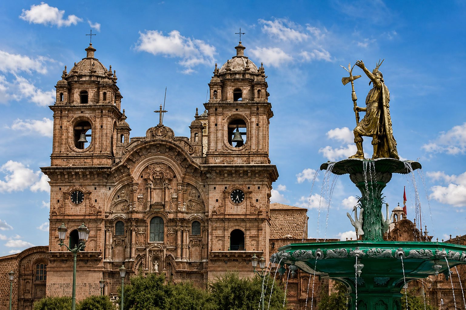 La Plaza de Armas de Cusco es el corazón de la ciudad y uno de los mejores lugares para empezar tu recorrido. Es un espacio amplio, bonito y lleno de historia, rodeado por iglesias, balcones coloniales, restaurantes, cafés y agencias de viaje.