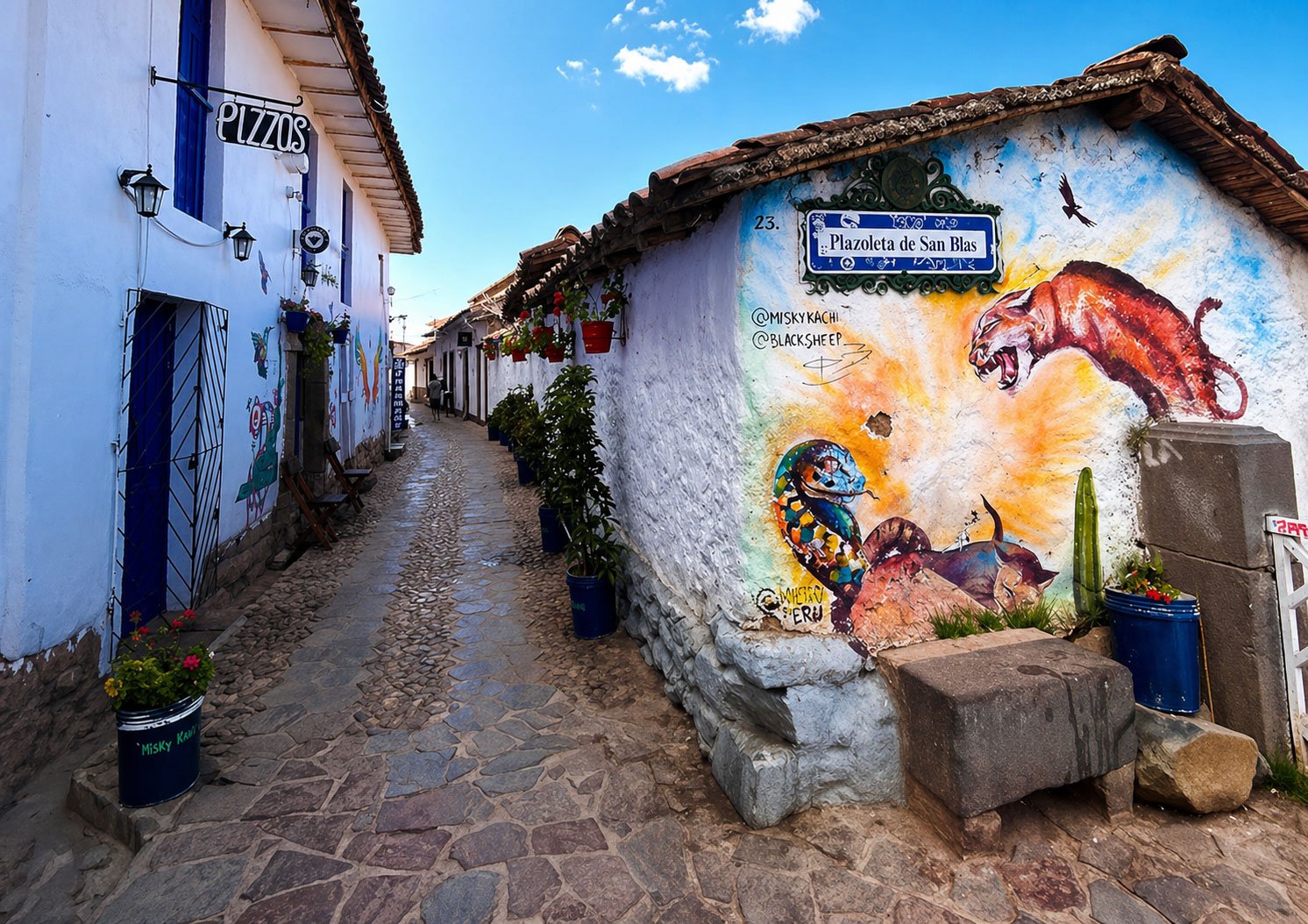 El barrio de San Blas es uno de los lugares más encantadores de Cusco. Sus calles estrechas, casas blancas, balcones azules, talleres artesanales y miradores lo convierten en una parada obligatoria para muchos viajeros.